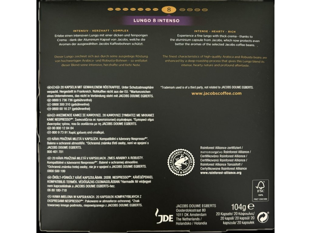 Jacobs Nespresso Lungo 20ks (po datu minimální trvanlivosti)